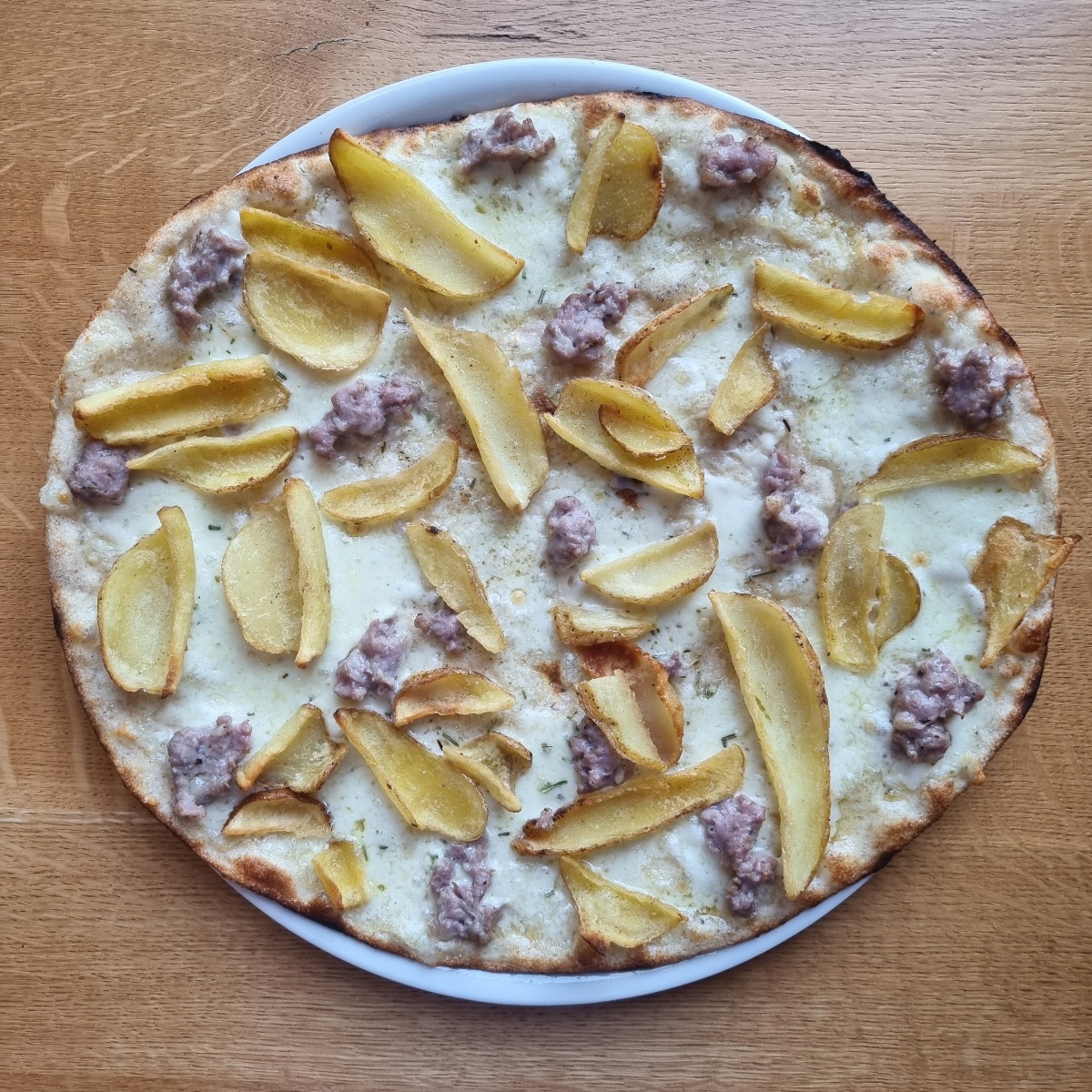 Fior di latte di Raiano, patate dippers, salsiccia artigianale, rosmarino.