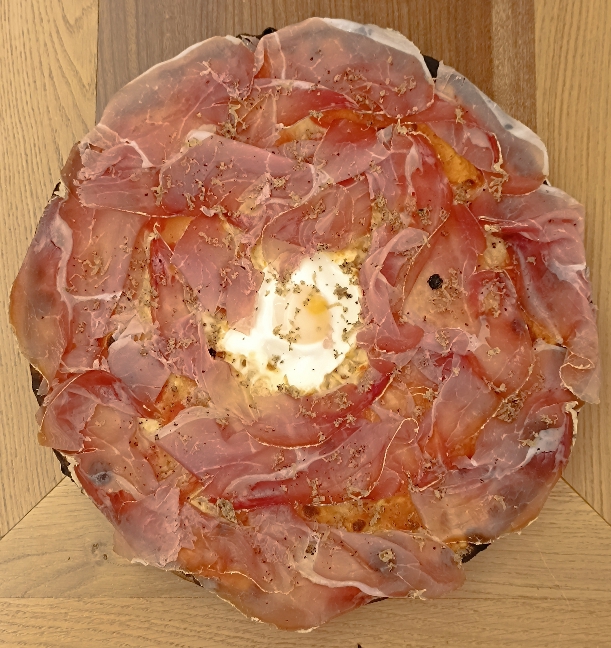 Fior di latte, pomodoro, uovo, culatello e tartufo